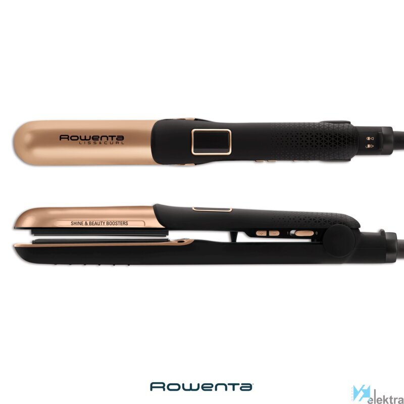 Plancha de pelo Rowenta 2 en 1 liss & curl Ultimate Shine dorada. SF6225F0