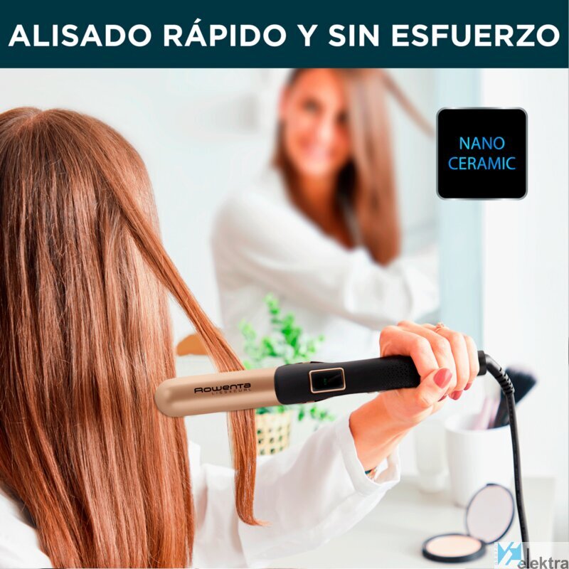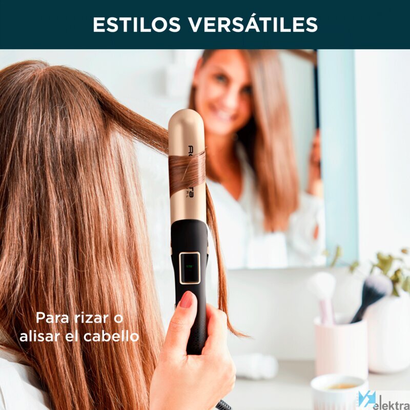 Plancha de pelo Rowenta 2 en 1 liss & curl Ultimate Shine dorada. SF6225F0Recipiente :
