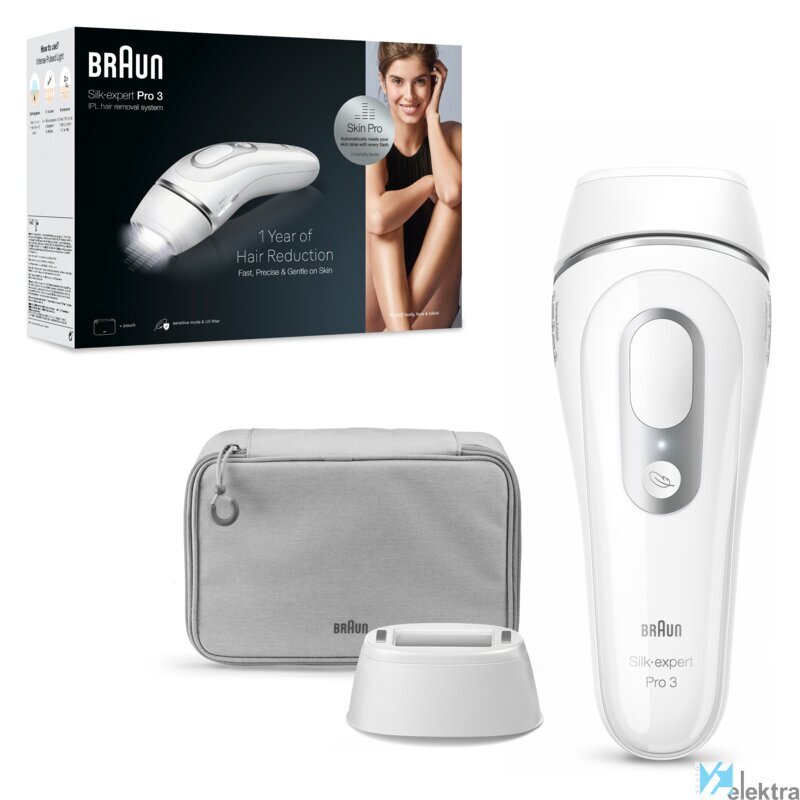 Braun Silk-expert Pro Silk expert Pro 3 PL3020. Tecnología de eliminación del vello: Luz pulsada intensa (IPL), Color del producto: Plata, Blanco, País de origen: Reino Unido. Fuente de energía: Corriente alterna, Voltaje de entrada AC: 100 - 240 V. Tipo de embalaje: Caja