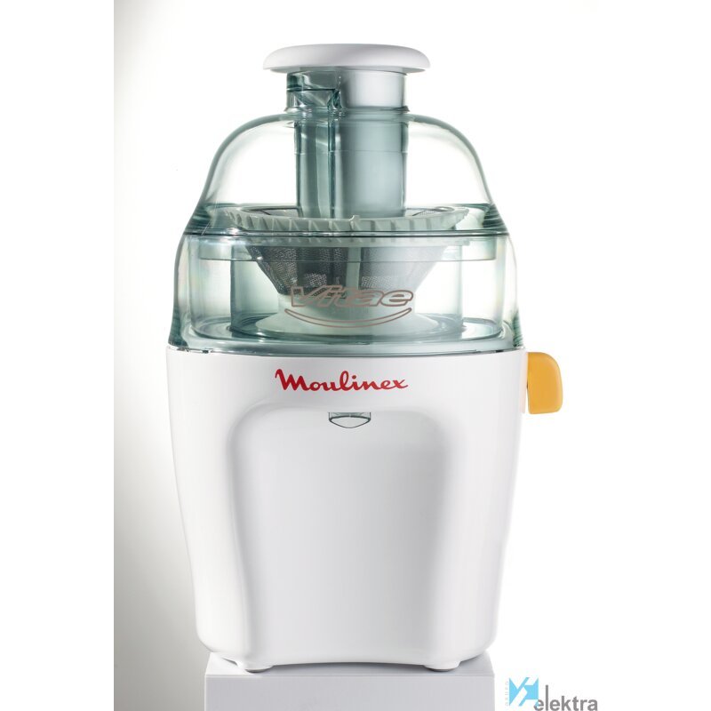 Moulinex JU2000. Tipo de producto: Licuadora centrífuga, Color del producto: Blanco, Velocidad de rotación: 12800 RPM. Material de la carcasa: Plástico, Material del filtro: Acero inoxidable. Potencia: 200 W, Voltaje de entrada AC: 230 V. Ancho: 16,5 mm, Profundidad: 18,5 mm, Altura: 26,3 mm. País de origen: ChinaRecipiente :