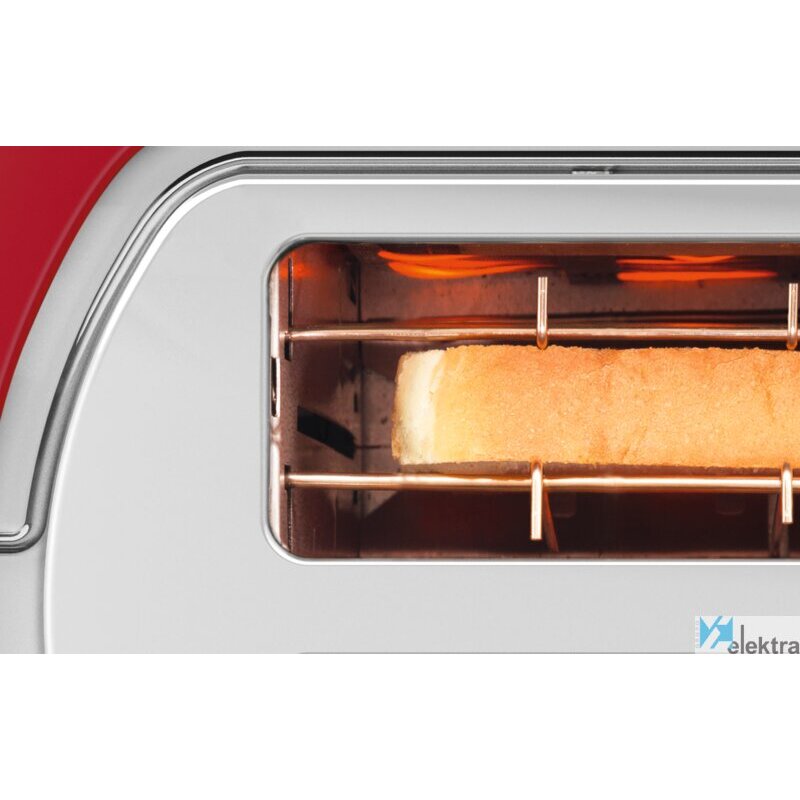 | Funciones y Programas | Sensor electrónico para un tostado uniforme del pan; Centrado automático del pan; Función descongelación con tecla iluminada independiente; Función recalentar; Extra-elevación para extraer fácilmente las tostadas; Calienta-panecillos integrado y plegable; Bandeja recogemigas; Función parada con interruptor luminoso; Desconexión automática en caso de bloqueo del pan. |