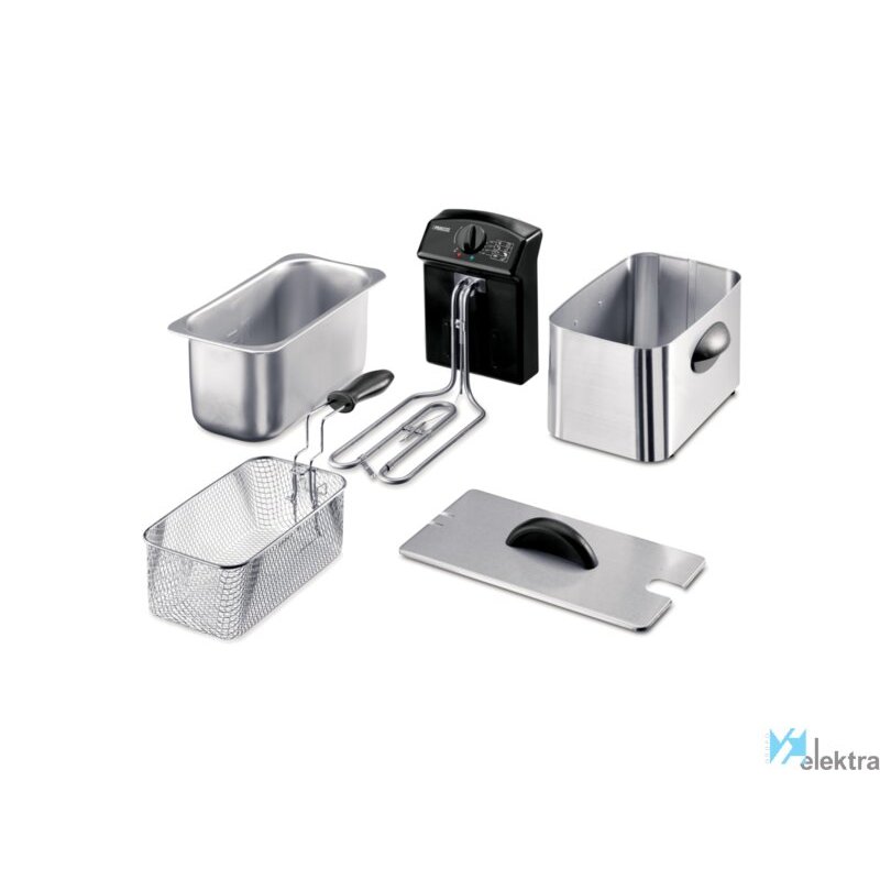 Princess 182004 Freidora PRO. Tipo de producto: Freidora, Capacidad: 4 L, Temperatura (máx): 190 °C. Tipo de construcción: Sencillo, Color del producto: Acero inoxidable, Tipo de control: Giratorio. Potencia: 2000 W, Voltaje de entrada AC: 230 V. Ancho: 250 mm, Profundidad: 425 mm, Altura: 276 mm. Peso del paquete: 3,71 kgRecipiente :
