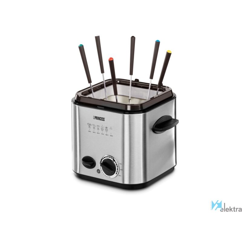Princess 182611 Mini freidora y fondue. Tipo de producto: Freidora, Capacidad: 1,2 L, Temperatura (min): 90 °C. Tipo de construcción: Sencillo, Color del producto: Negro, Plata, Tipo de control: Giratorio. Potencia: 840 W, Voltaje de entrada AC: 230 VRecipiente :