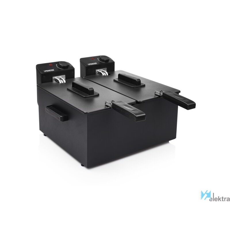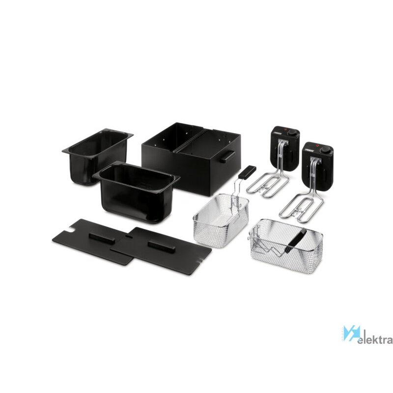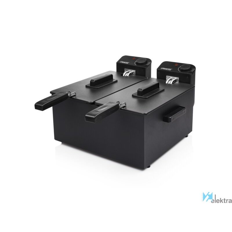 Princess 183028 Freidora negra doble. Tipo de producto: Freidora, Capacidad: 6 L, Capacidad de fritura: 1,8 kg. Tipo de construcción: Doble, Color del producto: Negro, Tipo de control: Giratorio. Potencia: 3600 W, Voltaje de entrada AC: 220-240 V. Ancho: 264 mm, Profundidad: 405 mm, Altura: 416 mm. Peso del paquete: 5,7 kg