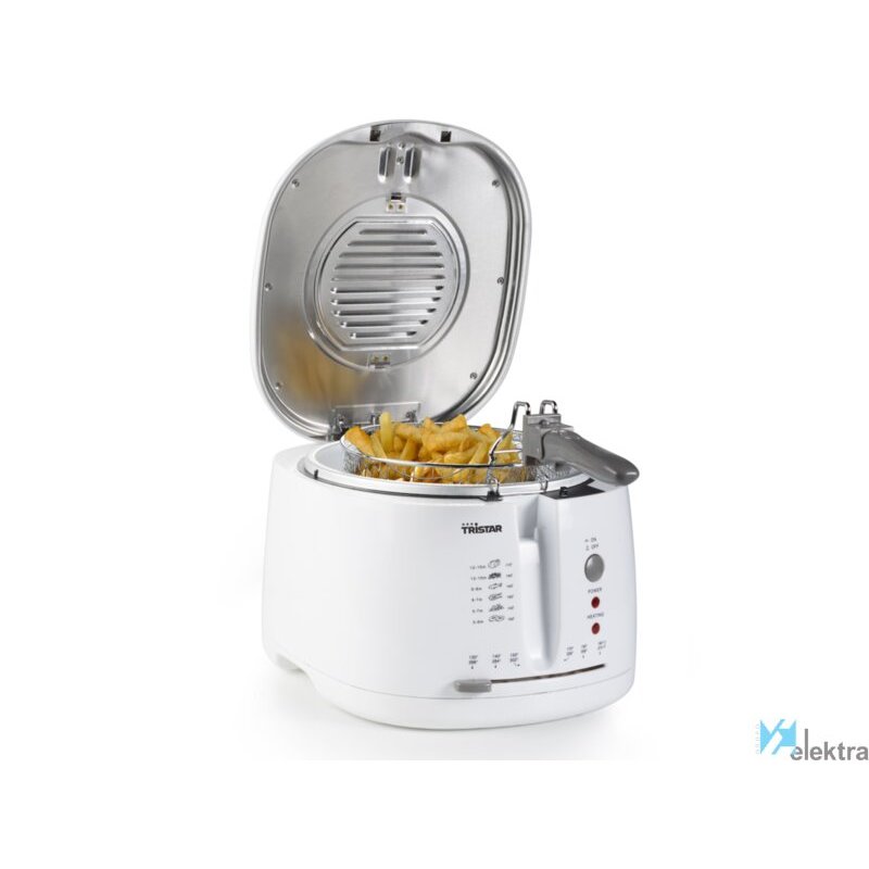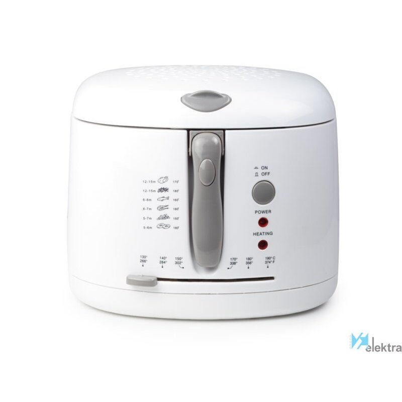 Tristar FR-6904 Freidora. Tipo de producto: Freidora, Capacidad: 2,5 L, Temperatura (min): 130 °C. Tipo de construcción: Sencillo, Color del producto: Blanco, Tipo de control: Botones, Barra de desplazamiento. Potencia: 1600 W, Voltaje de entrada AC: 230 V, Frecuencia de entrada AC: 50 Hz. Peso: 2,8 kg. Ancho del paquete: 300 mm, Profundidad del paquete: 250 mm, Altura del paquete: 350 mmRecipiente :