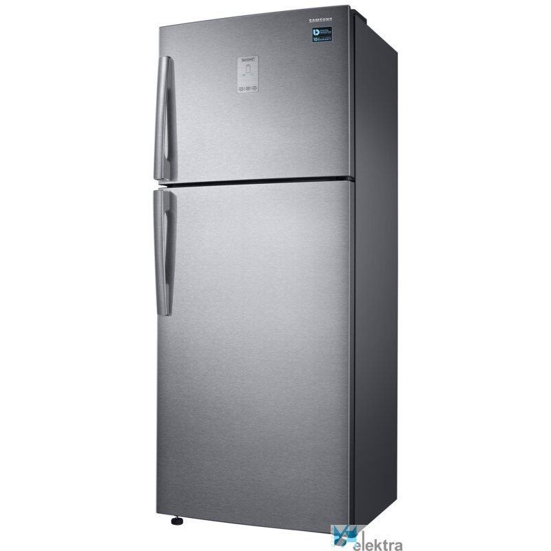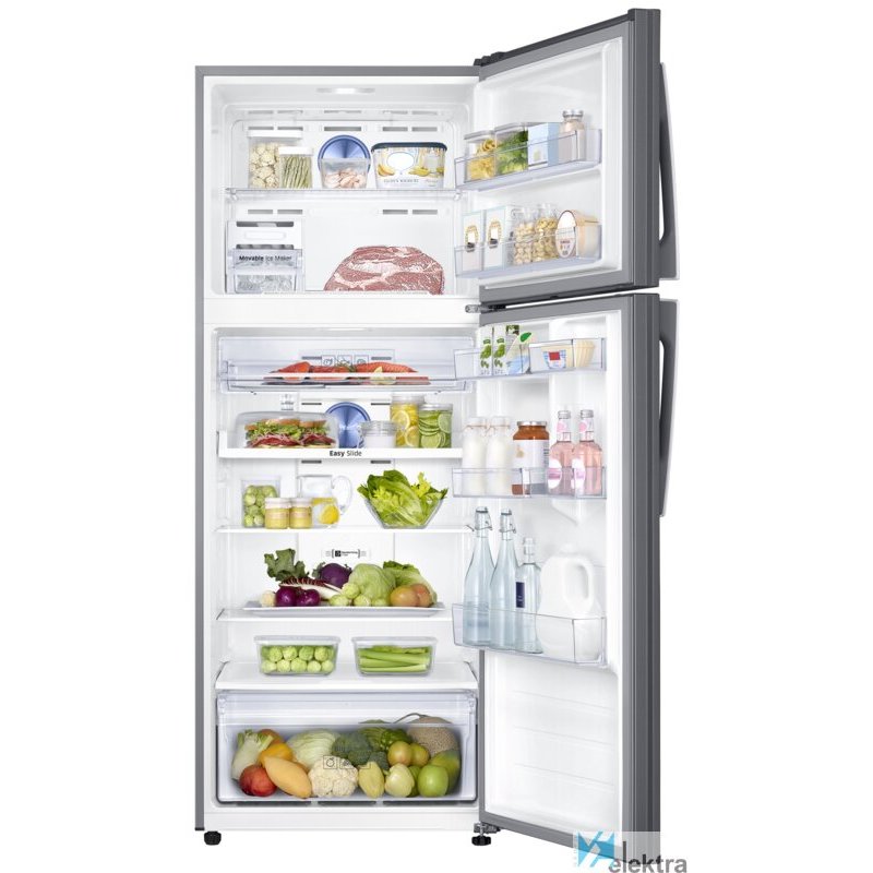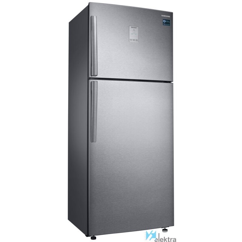 Samsung RT46K6335SL. Capacidad neta total: 456 L. Bisagra para puerta: Derecho. Clase climática: SN-T, Nivel de ruido: 40 dB. Frigorífico, capacidad neta: 343 L, Antiescarcha (nevera), Sistema multi-flujo de aire (nevera), Luz interior de la nevera. Congelador, capacidad neta: 111 L, Capacidad de congelación: 6 kg/24h, Antiescarcha (congelador). Compartimiento de zona fresca. Clase de eficiencia de energía: F, Consumo de energía anual: 307 kWh. Color del producto: Acero inoxidable