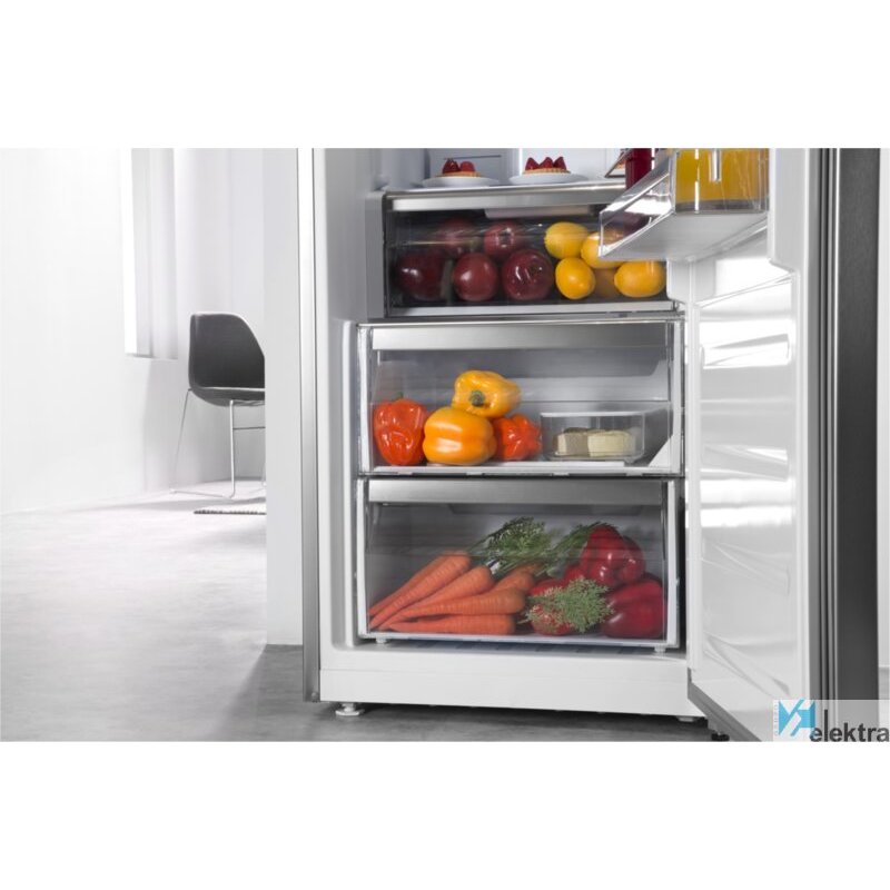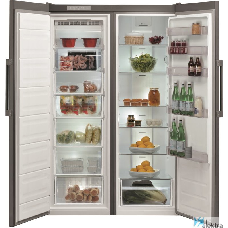 Whirlpool SW8 AM1Q X. Frigorífico, capacidad neta: 363 L, Sistema de descongelado, Clase climática: SN-T, Nivel de ruido: 38 dB. Frigorífico, número de compartimentos: 6, Número de compartimientos para verduras: 1, Bisagra para puerta: Derecho. Consumo de energía anual: 145 kWh. Peso: 62 kg. Color del producto: Acero inoxidableRecipiente :