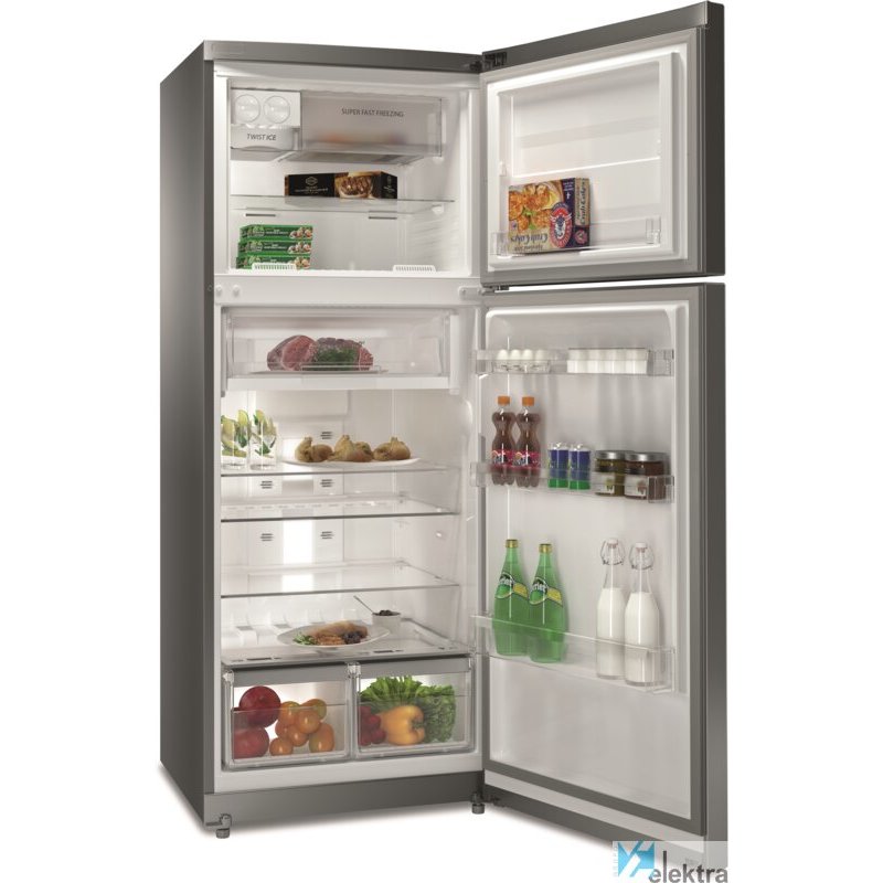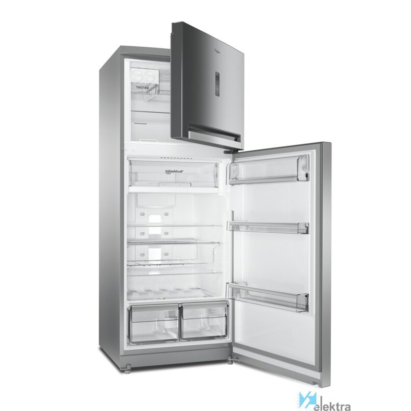 Whirlpool T TNF 8211 OX. Capacidad neta total: 422 L. Bisagra para puerta: Derecho. Clase climática: N-T, Nivel de ruido: 43 dB. Frigorífico, capacidad neta: 104 L, Antiescarcha (nevera), Sistema multi-flujo de aire (nevera), Luz interior de la nevera, Frigorífico, número de compartimentos: 4. Congelador, capacidad neta: 104 L, Capacidad de congelación: 5 kg/24h, Antiescarcha (congelador). Con ...Recipiente :