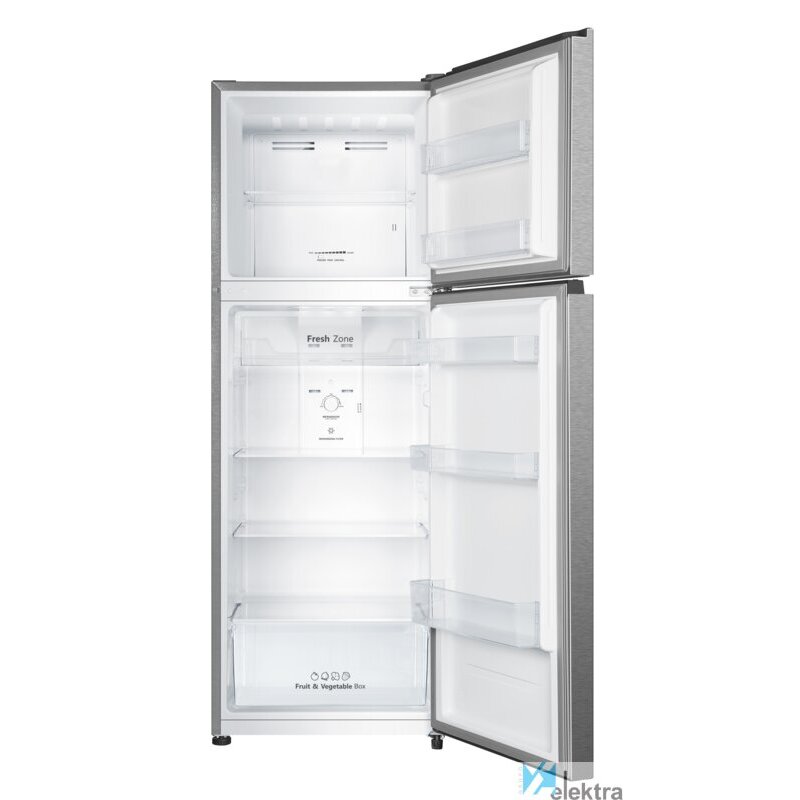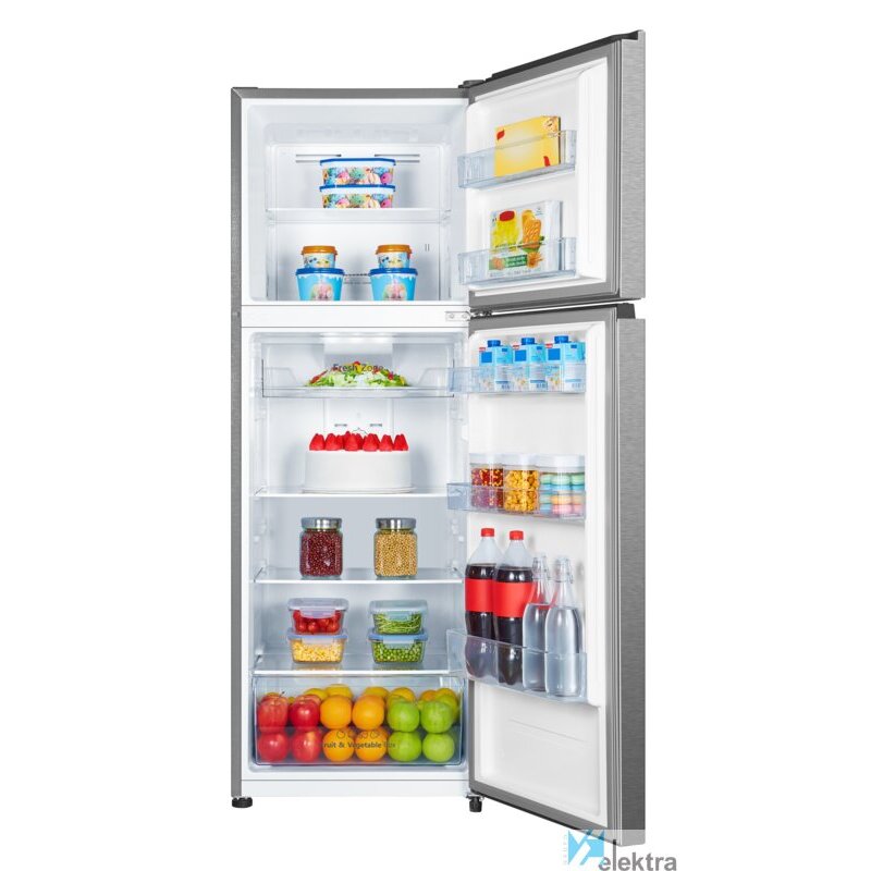 Hisense RT422N4ACE. Capacidad neta total: 325 L. Bisagra para puerta: Derecho. Clase climática: SN-T, Nivel de ruido: 40 dB. Frigorífico, capacidad neta: 252 L, Antiescarcha (nevera), Sistema multi-flujo de aire (nevera), Luz interior de la nevera, Frigorífico, número de compartimentos: 4. Congelador, capacidad neta: 73 L, Capacidad de congelación: 3 kg/24h, Antiescarcha (congelador). Clase de eficiencia de energía: E, Consumo de energía anual: 216 kWh. Color del producto: Acero inoxidable
