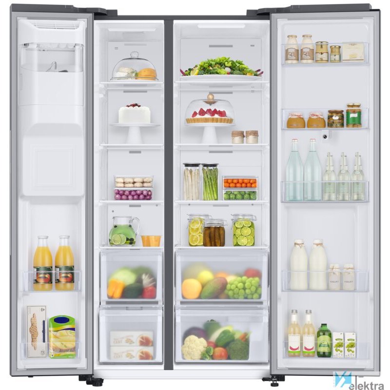 Samsung RS6HA8880S9. Tipo de instalación: Independiente, Diseño de producto: Puerta americana, Color del producto: Metálico, Acero inoxidable. Capacidad neta total: 614 L, Clase climática: SN-T, Clase de emisión de ruido: C. Frigorífico, capacidad neta: 389 L. Congelador, capacidad neta: 225 L, Posición congelada: Lateral, Capacidad de congelación: 15 kg/24h. Clase de eficiencia de energía: F, ...Recipiente :