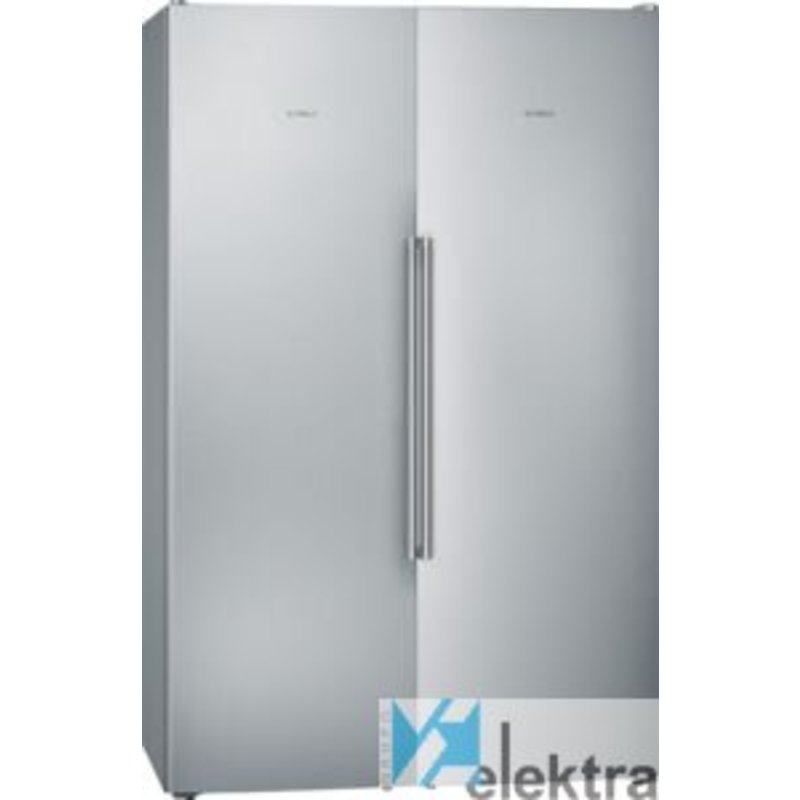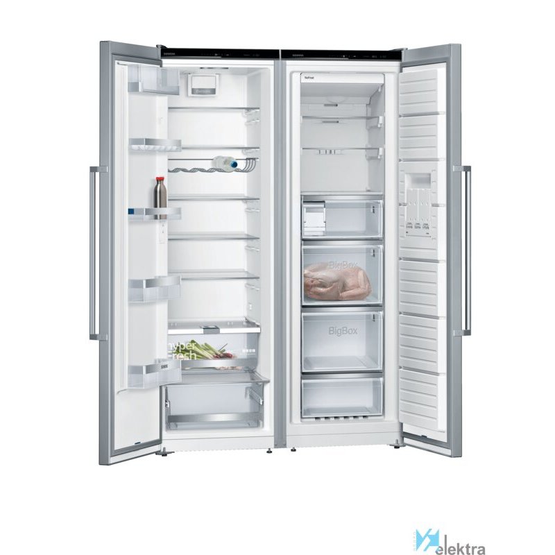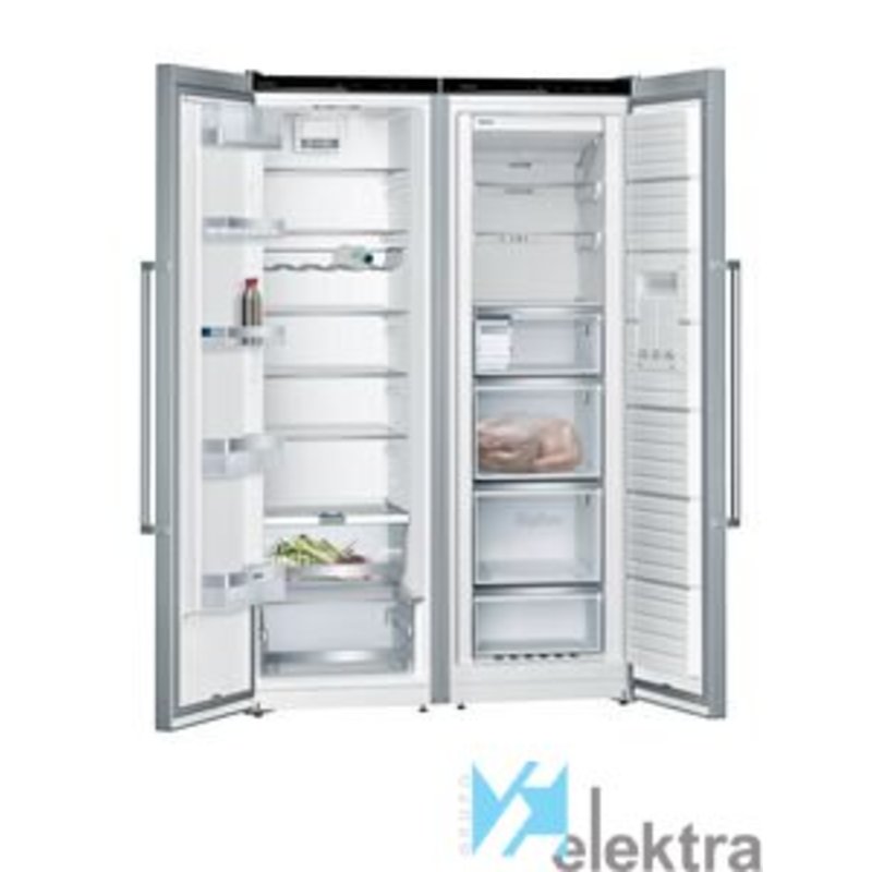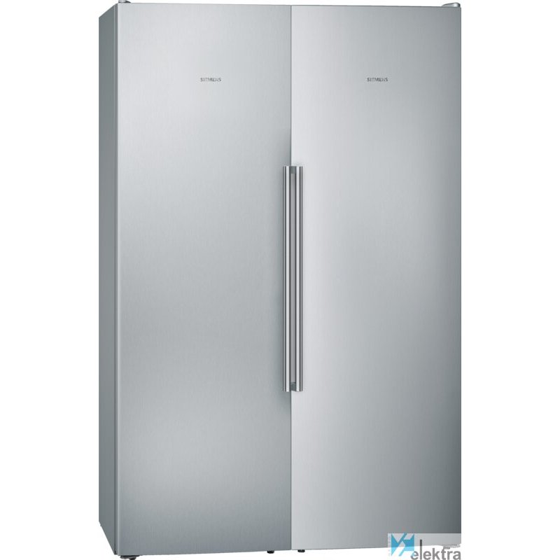 Siemens iQ500 Set frigorífico y congelador de una puerta libre instalación y accesorio GS36NAIEP + KS36VAIEP + KS39ZAL00. Tipo de instalación: Independiente, Color del producto: Acero inoxidable, Clase climática: SN-T. Frigorífico, capacidad neta: 346 L, Nivel de ruido (nevera): 39 dB, Bisagra de la puerta (nevera): Izquierda. Congelador, capacidad neta: 242 L, Tiempo de almacenamiento en caso de fallo de alimentación: 9 h, Clase de emisión sonora (congelador): C. Clase de eficiencia energética (nevera): E, Consumo de energía anual (nevera): 116 kWh, Carga conectada (nevera): 90 W. Anchura del embalaje del congelador: 74,6 m