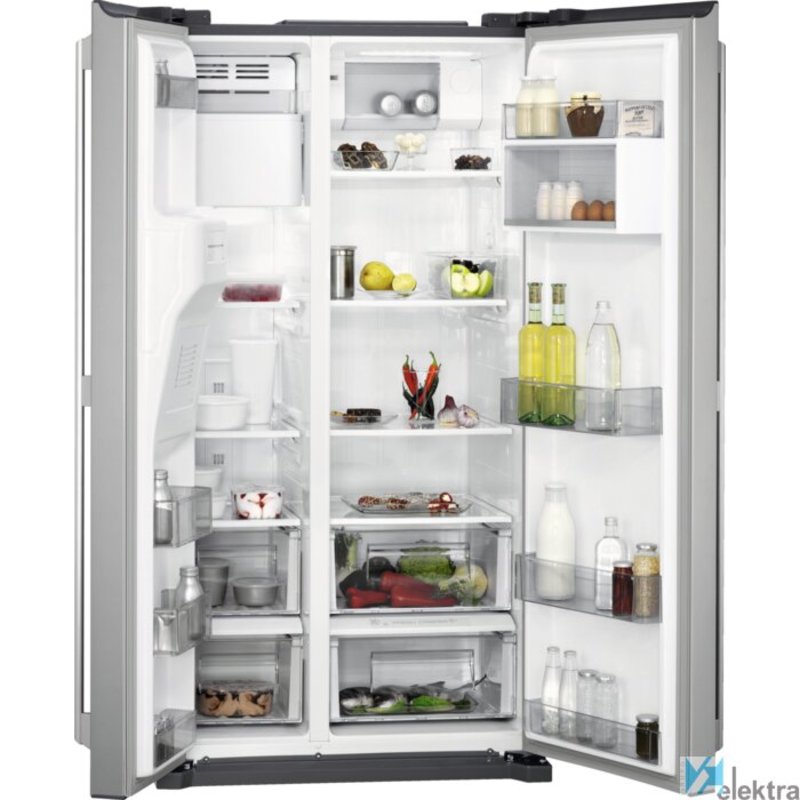 Frigorífico americano Frost Free de 1,78 x 0,91 x 0,73 m, touch control, dispensador agua y hielo, cajón Magic Zone, Inox antihuellasRecipiente :