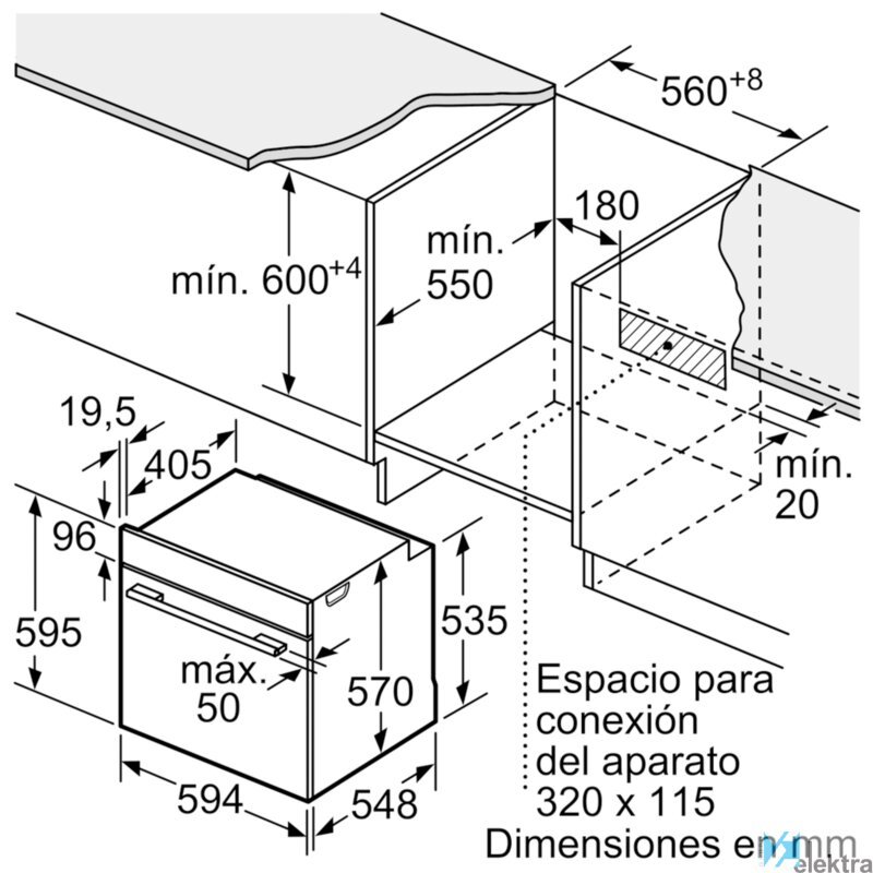 | Altura máxima del hueco | 595 mm |