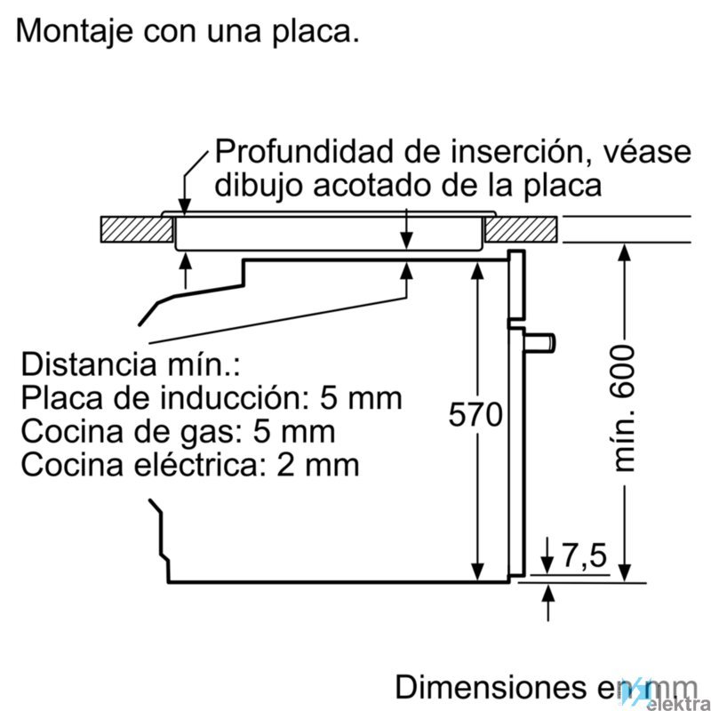 | Altura mínima del hueco | 585 mm |