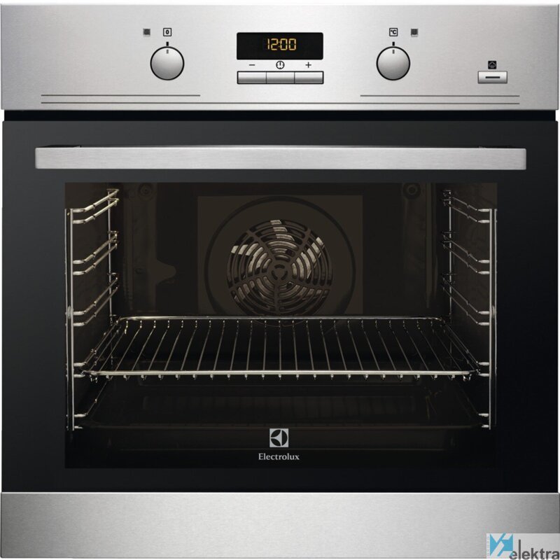 Electrolux EOB3434FOX. Tamaño del horno: Medio, Tipo de horno: Horno eléctrico, Total capacidad interior, horno (s): 72 L. Tipo de instalación: Integrado, Color del producto: Acero inoxidable, Tipo de control: Botones, Giratorio. Tipo de reloj: Electrónico, Tipo de temporizador: Digital, Modos del temporizador: Tiempo de cocción, Fin de cocción. Consumo de energía (convencional): 0,93 kWh, Consumo de energía (convección forzada): 0,69 kWh, Carga conectada: 2980 W. Cantidad de lámparas: 1 lámpara(s), Tipo de lámpara: Halógeno, Iluminación ubicación: Lado