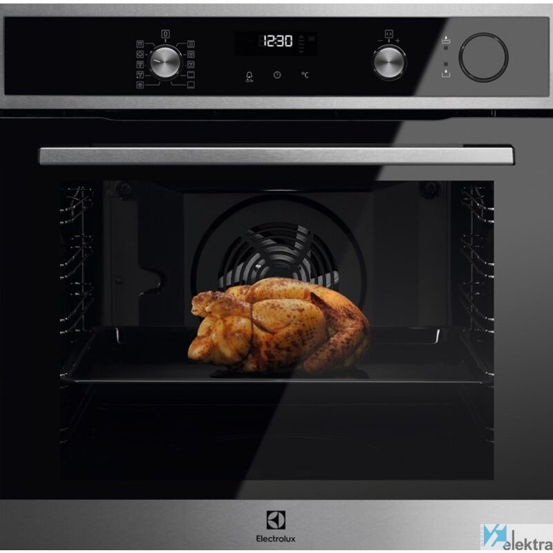 Electrolux EOC6P71X. Tamaño del horno: Medio, Tipo de horno: Horno eléctrico, Total capacidad interior, horno (s): 72 L. Tipo de instalación: Integrado, Color del producto: Acero inoxidable, Tipo de control: Giratorio, Tocar. Tipo de reloj: Electrónico, Tipo de temporizador: Digital, Modos del temporizador: Tiempo de cocción, Fin de cocción, Cronómetro, Temporizador. Consumo de energía (convencional): 0,93 kWh, Consumo de energía (convección forzada): 0,69 kWh, Escala de eficiencia energética: A+++ a D. Tipo de lámpara: Halógeno