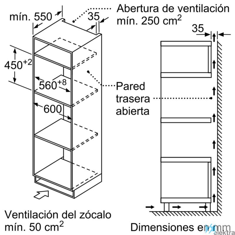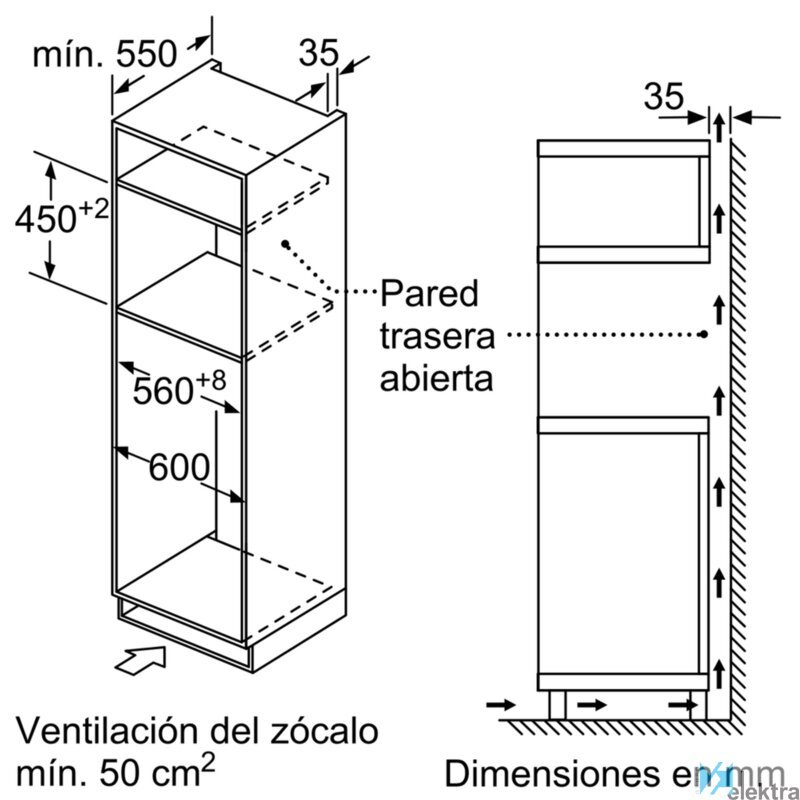 | Fondo con puerta abierta a 90 grados | 825 mm |