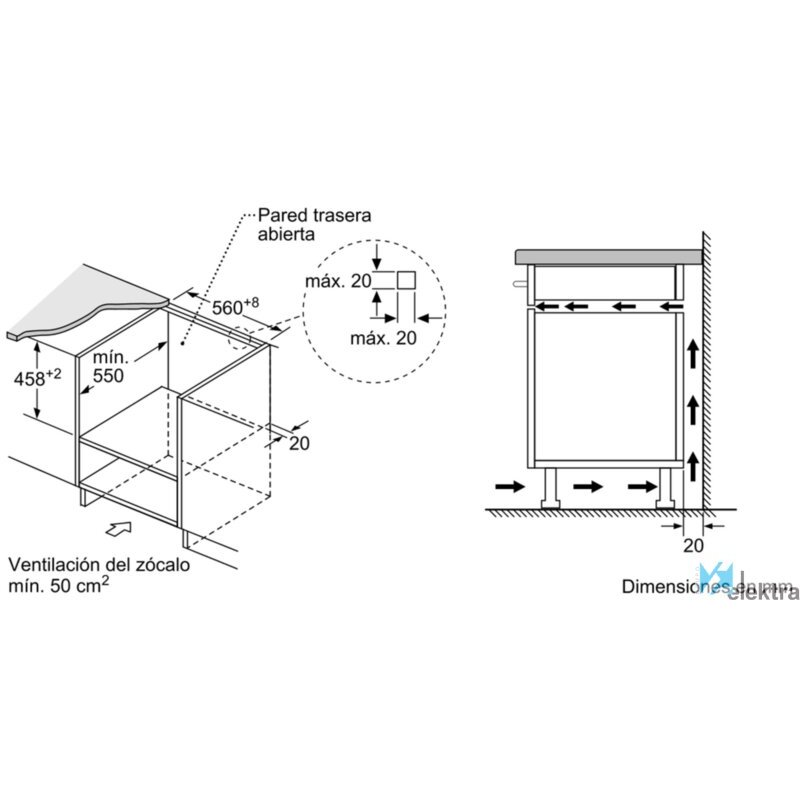 | Otras características | Diseño Serie Cristal; Puerta abatible; Diseño profesional y fácil limpieza; Asistente de limpieza Aqualisis; Base cerámica sin plato giratorio; Interior de acero inoxidable; Accesorios incluidos: parrilla alta para grill. |