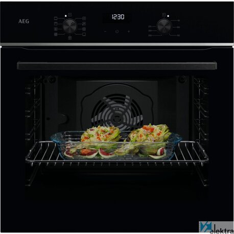 Horno multifunción Serie 5000 SurroundCook con Display LED de 72 litros con 9 funciones, mandos escamoteables Inox, puerta de 2 cristales, cristal negro con perfil Inox Infinity y tirador neRecipiente :