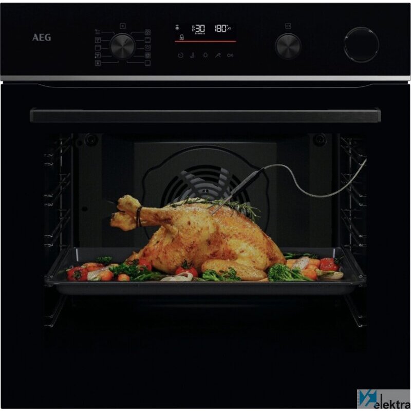 Horno pirolítico de vapor Serie 6000 SenseCook con SteamCrisp y Display LED Explore con WiFi, de 70 litros, 9 funciones + 45 programas automáticos, sonda térmica, mandos escamoteables, carri
