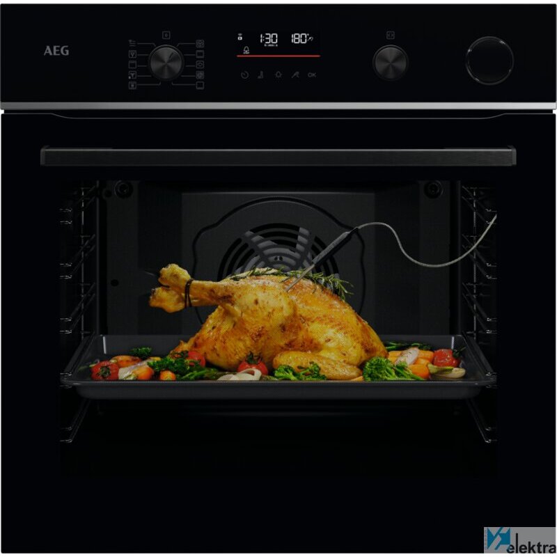 Horno pirolítico de vapor Serie 6000 SenseCook con SteamCrisp y Display LED Explore con WiFi, de 70 litros, 9 funciones + 45 programas automáticos, sonda térmica, mandos escamoteables, carriRecipiente :