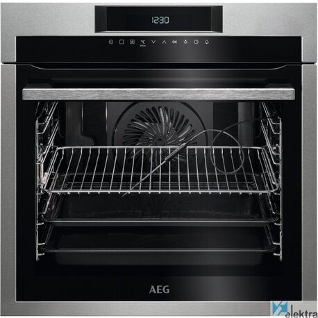 Horno pirolítico SenseCook de la Serie 7000 con 12 funciones (3 ciclos de pirólisis), sonda térmica, control táctil y 20 programas automáticos, carriles telescópicos en 1 nivel, INOX AntihueRecipiente :