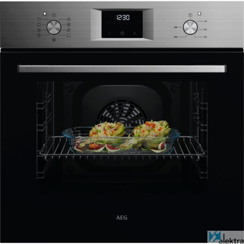 Horno multifunción de la Serie 5000 SurroundCook y Display LED de 65 litros, 9 funciones, limpieza AquaClean, mandos escamoteables Inox, puerta de 4 cristales, Inox Infinity y tirador Inox IRecipiente :