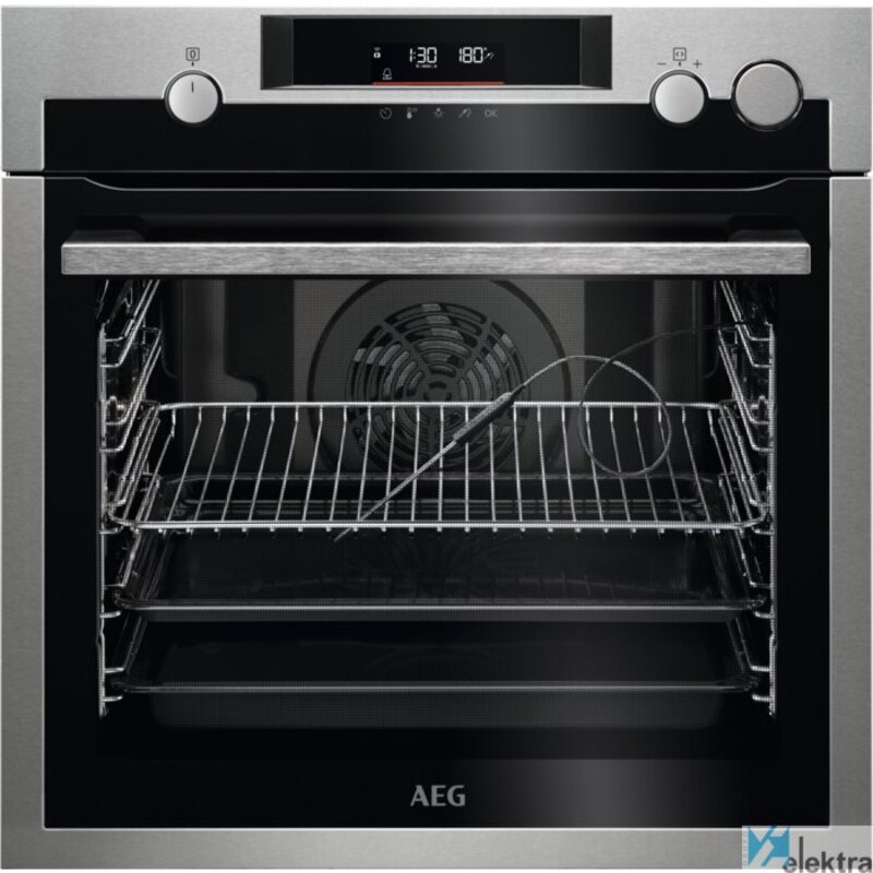 Horno de vapor pirolítico AEG de la Serie 7000 SteamCrisp, 9 funciones (1 a vapor), 3 ciclos de pirólisis, 45 programas automáticos, sonda térmica, display Explore (táctil con mandos escamotRecipiente :