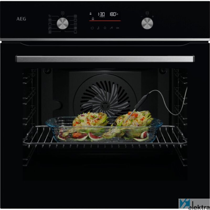 Horno pirolítico multifunción Serie 5000 SteamBake con Display LED Explore con WiFi de 71 litros con 9 funciones y 45 programas automáticos, mandos escamoteables Inox, sonda térmica, carrileRecipiente :