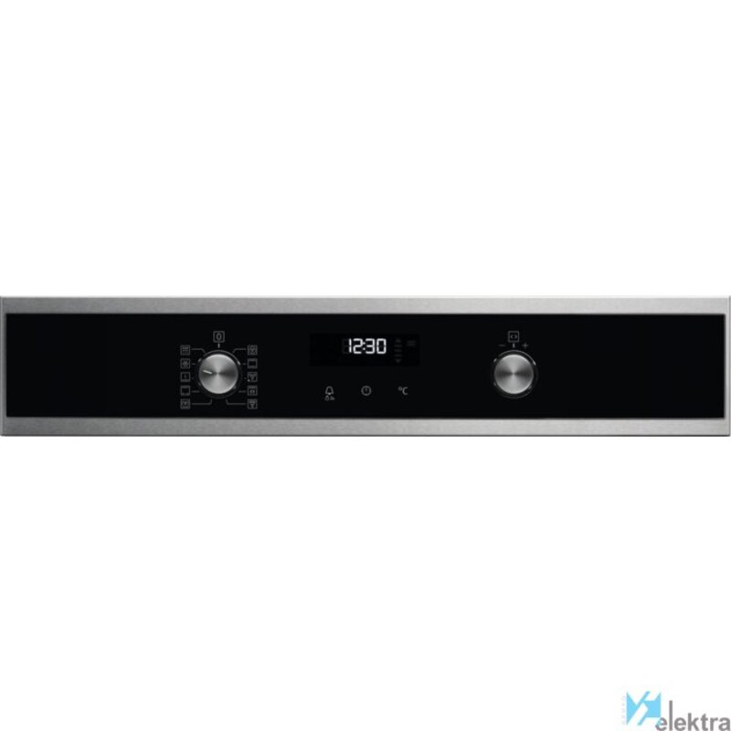 Electrolux EOF6P60X. Tamaño del horno: Medio, Tipo de horno: Horno eléctrico, Total capacidad interior, horno (s): 72 L. Tipo de instalación: Integrado, Color del producto: Acero inoxidable, Tipo de control: Giratorio, Tocar. Tipo de reloj: Electrónico, Tipo de temporizador: Digital, Modos del temporizador: Tiempo de cocción, Fin de cocción, Temporizador. Consumo de energía (convencional): 0,93 kWh, Consumo de energía (convección forzada): 0,69 kWh, Escala de eficiencia energética: A+++ a D. Tipo de lámpara: Halógeno