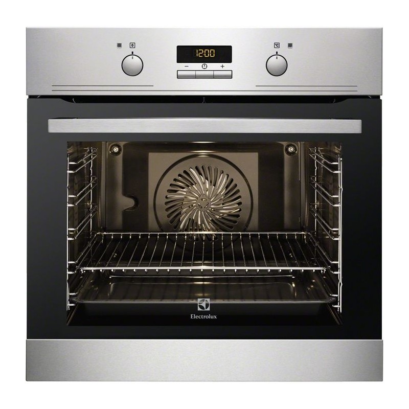 Electrolux EOB2430BOX. Tamaño del horno: Medio, Tipo de horno: Horno eléctrico, Total capacidad interior, horno (s): 72 L. Tipo de instalación: Integrado, Color del producto: Acero inoxidable, Tipo de control: Botones, Giratorio. Tipo de reloj: Electrónico, Tipo de temporizador: Digital, Modos del temporizador: Tiempo de cocción, Fin de cocción. Consumo de energía (convencional): 0,93 kWh, Consumo de energía (convección forzada): 0,69 kWh, Carga conectada: 2780 W. Cantidad de lámparas: 1 lámpara(s), Tipo de lámpara: Halógeno, Iluminación ubicación: Lado