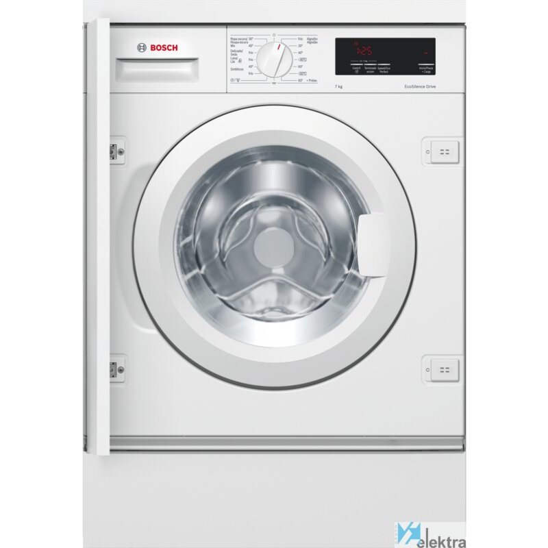 Bosch Serie 6 WIW24301ES. Tipo de carga: Carga frontal. Capacidad nominal: 7 kg, Clase de secado por giro: B, Nivel de ruido (spin): 66 dB, Nivel de ruido (lavado): 41 dB, Máxima velocidad de centrifugado: 1200 RPM. Consumo anual de energía, lavado: 139 kWh, Consumo anual de agua de lavado: 8800 L. Color del producto: Blanco. Ancho: 596 mm, Profundidad: 555 mm, Altura: 818 mm
