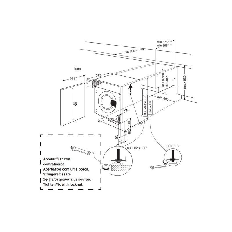 Lavadora integrada. 1200 rpm. Capacidad 7 kg. Consumo energético A+++. Display Smart XL. Altura 82 cm. Tecnología 6th Sense.
