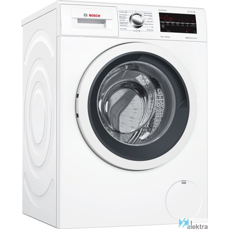 Bosch Serie 6 WAT24469ES. Tipo de carga: Carga frontal. Capacidad nominal: 8 kg, Clase de secado por giro: B, Nivel de ruido (spin): 74 dB, Nivel de ruido (lavado): 49 dB, Máxima velocidad de centrifugado: 1200 RPM. Consumo anual de energía, lavado: 135 kWh, Consumo anual de agua de lavado: 9680 L. Color del producto: Blanco. Ancho: 598 mm, Profundidad: 599 mm, Altura: 848 mm