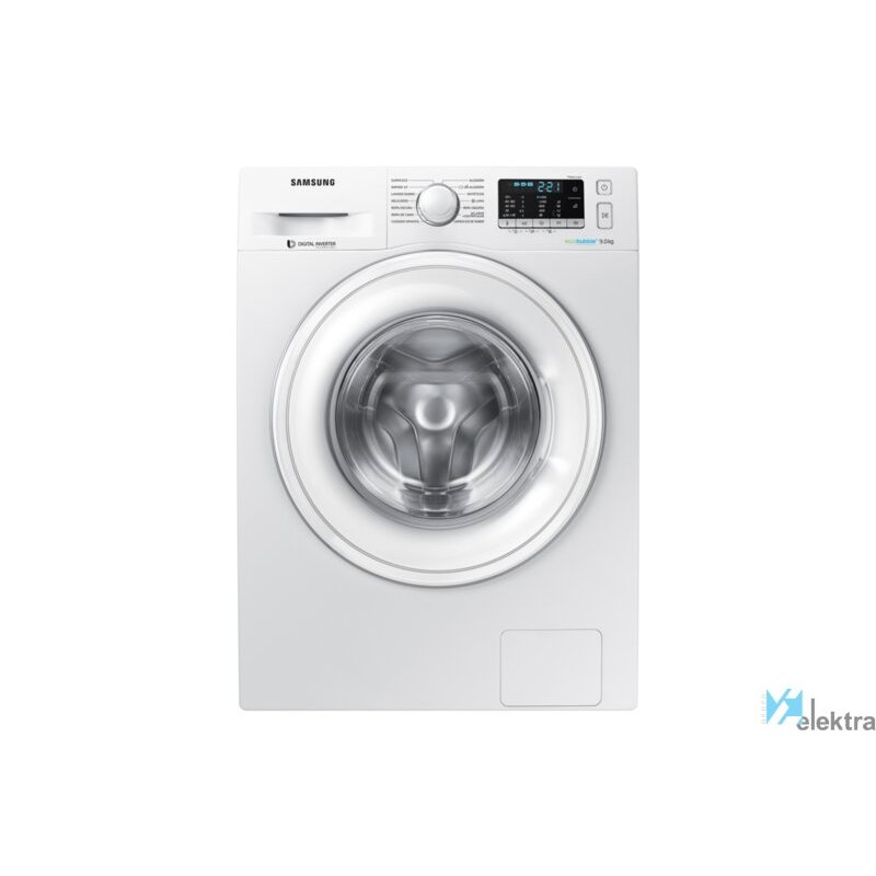 Samsung WW90J5455DW. Tipo de carga: Carga frontal. Capacidad nominal: 9 kg, Clase de secado por giro: A, Nivel de ruido (spin): 74 dB, Nivel de ruido (lavado): 50 dB, Máxima velocidad de centrifugado: 1400 RPM. Consumo anual de energía, lavado: 130 kWh, Consumo anual de agua de lavado: 9400 L. Color del producto: Blanco. Ancho: 600 mm, Profundidad: 550 mm, Altura: 850 mm
