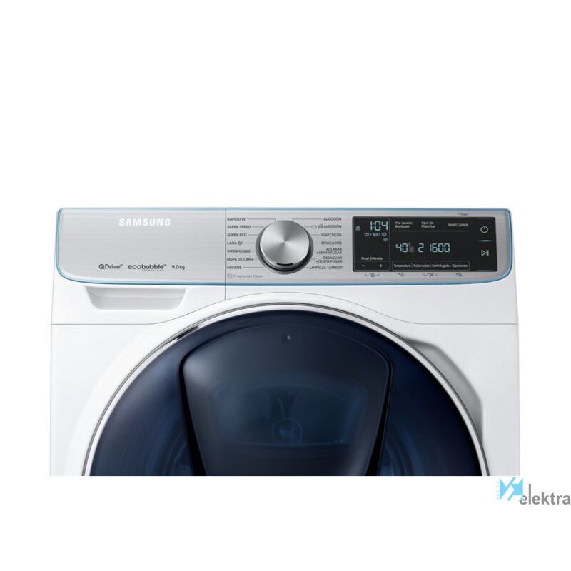Samsung WW90M76FNOA. Tipo de carga: Carga frontal. Capacidad nominal: 9 kg, Clase de secado por giro: A, Nivel de ruido (spin): 75 dB. Clase de lavado: A. Nivel de ruido (lavado): 49 dB, Máxima velocidad de centrifugado: 1600 RPM. Consumo anual de energía, lavado: 130 kWh, Consumo anual de agua de lavado: 9400 L. Color del producto: Blanco. Ancho: 600 mm, Profundidad: 690 mm, Altura: 850 mm