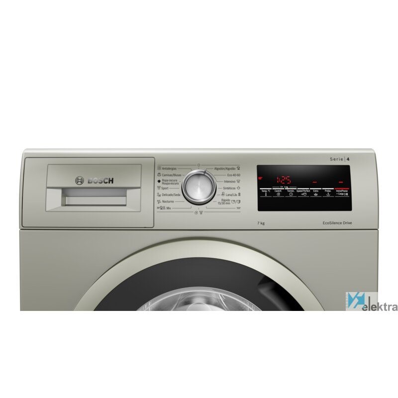 Lavadora Bosch de carga frontal, 7 kg, Acero mate antihuellas, 1200 rpm, Serie 4, WAN2427XES.
