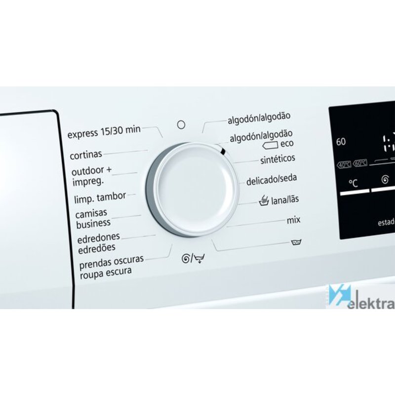 Siemens iQ500 WM12UT62ES. Tipo de carga: Carga frontal. Capacidad nominal: 9 kg, Clase de secado por giro: B, Nivel de ruido (spin): 72 dB, Nivel de ruido (lavado): 48 dB, Máxima velocidad de centrifugado: 1200 RPM. Color del producto: Blanco. Ancho: 598 mm, Profundidad: 590 mm, Altura: 845 mm. Clase de eficiencia de energía: CRecipiente :