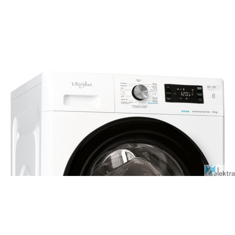 Whirlpool FFB 8448 BV SP. Tipo de carga: Carga frontal. Capacidad nominal: 8 kg, Clase de secado por giro: B, Nivel de ruido (spin): 78 dB, Máxima velocidad de centrifugado: 1351 RPM. Color del producto: Blanco. Ancho: 595 mm, Profundidad: 630 mm, Altura: 845 mm. Clase de eficiencia de energía: C