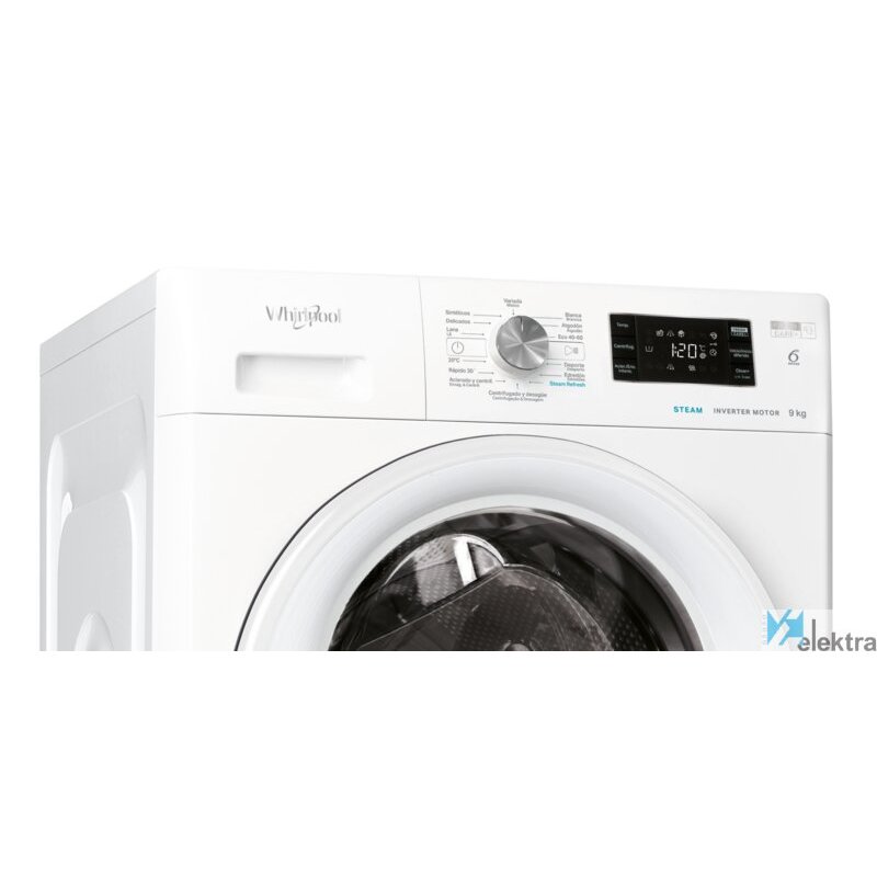 Whirlpool FFB 9248 WV SP. Tipo de carga: Carga frontal. Capacidad nominal: 9 kg, Clase de secado por giro: B, Nivel de ruido (spin): 79 dB, Nivel de ruido (lavado): 52 dB, Máxima velocidad de centrifugado: 1200 RPM. Color del producto: Blanco. Ancho: 595 mm, Profundidad: 630 mm, Altura: 850 mm. Clase de eficiencia de energía: CRecipiente :