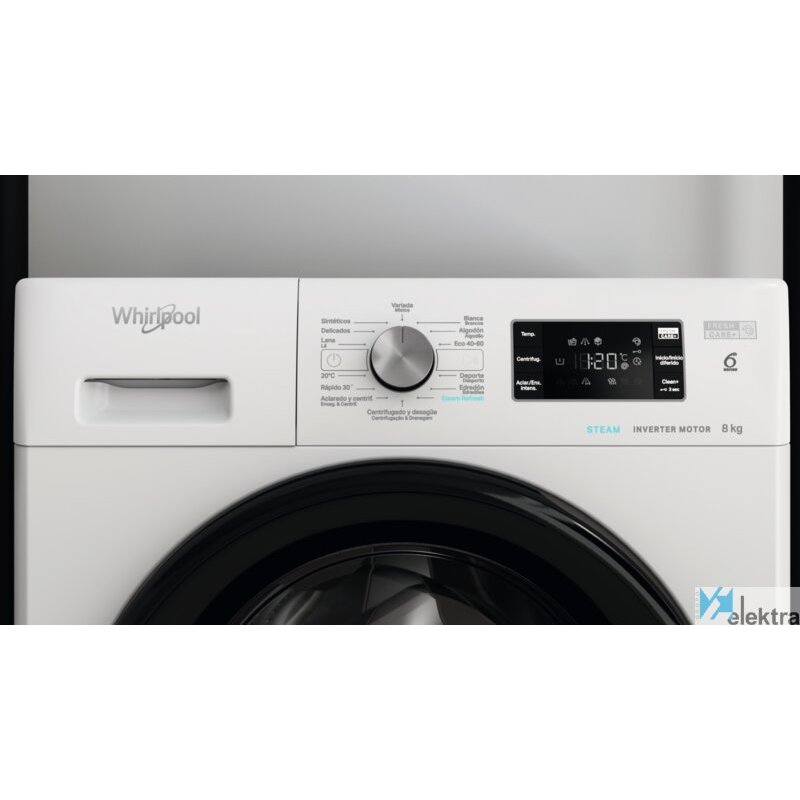 Whirlpool FFB 8458 BV SP. Tipo de carga: Carga frontal. Capacidad nominal: 8 kg, Clase de secado por giro: B, Nivel de ruido (spin): 78 dB, Máxima velocidad de centrifugado: 1400 RPM. Color del producto: Blanco. Ancho: 595 mm, Profundidad: 630 mm, Altura: 845 mm. Clase de eficiencia de energía: B