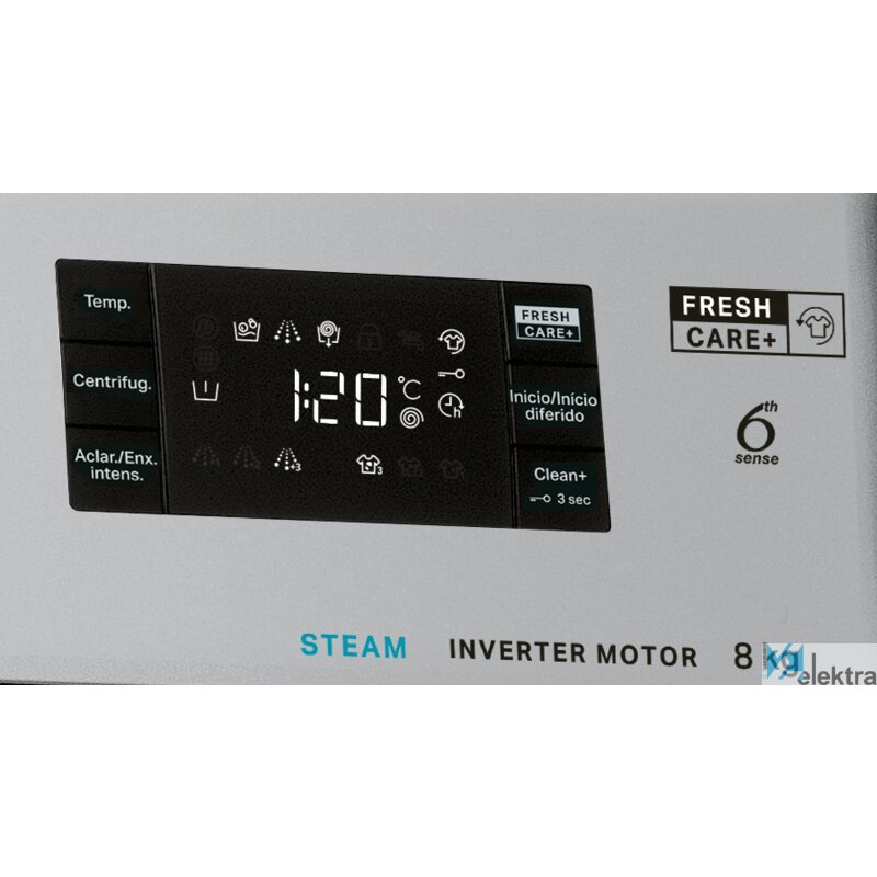 | Características principales | Lavadora de libre instalación; Carga frontal; Blanco; Potencia: 1850 W; Programa automático; Opciones de centrifugado variable y sin centrifugado; Control de espuma, Control de equilibrio; Inicio diferido; Indicación de tiempo restante; Clasificación energética: B; Capacidad máxima de carga 8 Kg; 1151 rpm; Voltaje 220-240 V. |