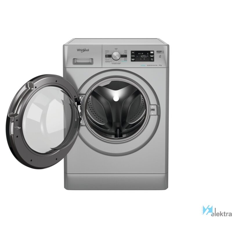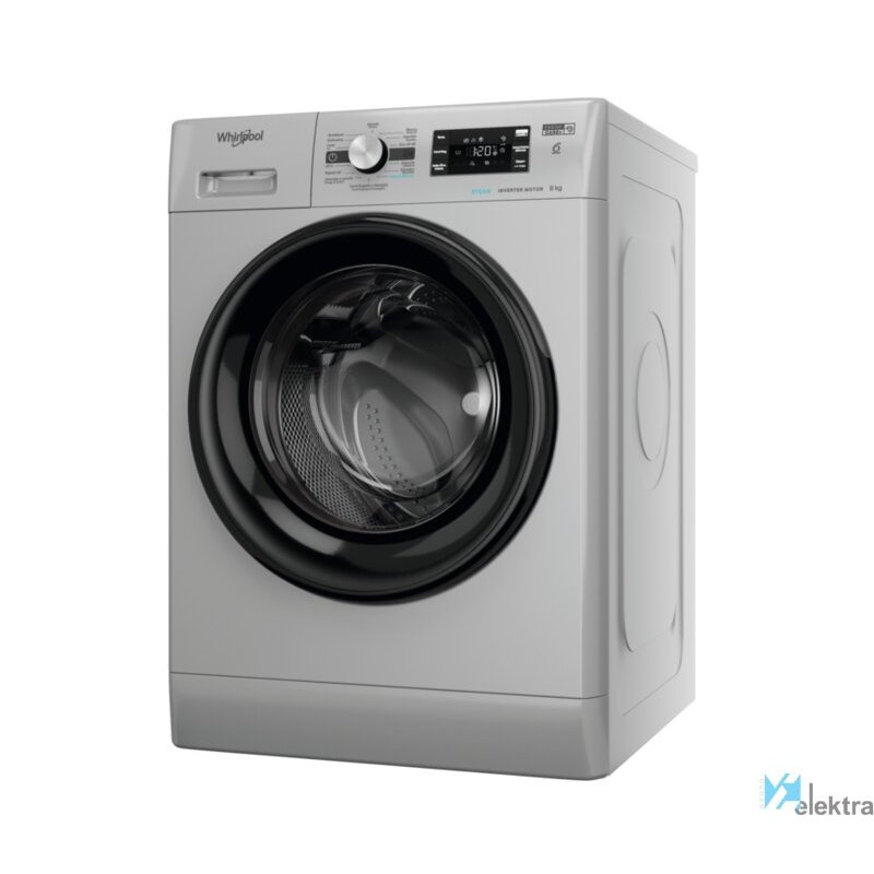 Whirlpool FFB 8258 SBV SP. Tipo de carga: Carga frontal. Capacidad nominal: 8 kg, Clase de secado por giro: B, Nivel de ruido (spin): 79 dB, Máxima velocidad de centrifugado: 1200 RPM. Color del producto: Plata. Ancho: 595 mm, Profundidad: 630 mm, Altura: 845 mm. Clase de eficiencia de energía: B