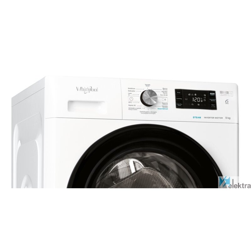 Whirlpool FFB 9258 BV PT. Tipo de carga: Carga frontal. Capacidad nominal: 9 kg, Clase de secado por giro: B, Nivel de ruido (spin): 79 dB, Máxima velocidad de centrifugado: 1200 RPM. Color del producto: Blanco. Ancho: 595 mm, Profundidad: 630 mm, Altura: 850 mm. Clase de eficiencia de energía: B