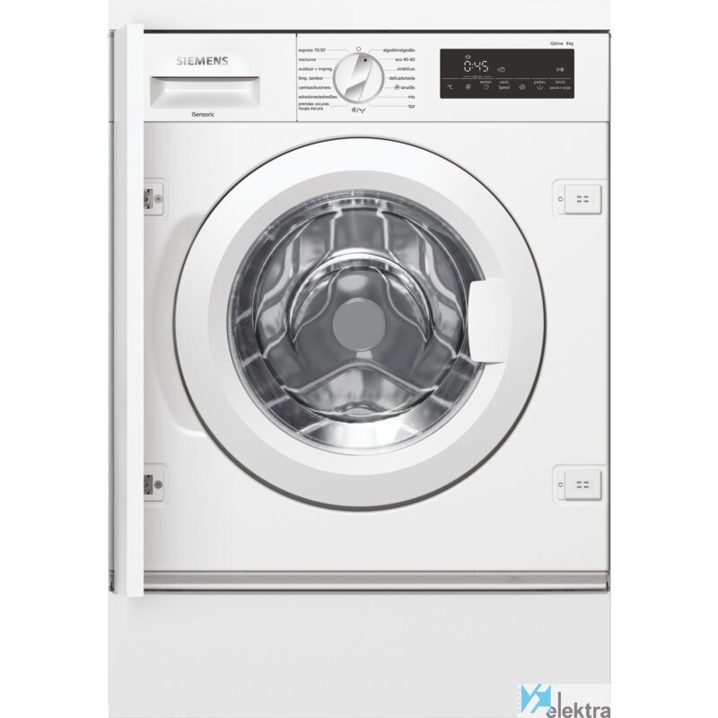 Siemens iQ700 WI14W542ES. Tipo de carga: Carga frontal. Capacidad nominal: 8 kg, Clase de secado por giro: B, Nivel de ruido (spin): 66 dB, Nivel de ruido (lavado): 41 dB, Máxima velocidad de centrifugado: 1400 RPM. Color del producto: Blanco. Ancho: 596 mm, Profundidad: 544 mm, Altura: 818 mm. Clase de eficiencia de energía: CRecipiente :