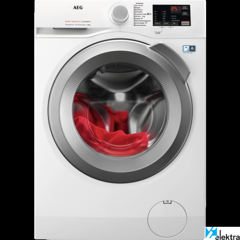 Lavadora AEG de la Serie 6000 con 8 kg de capacidad y centrifugado de hasta 1.400 rpm, motor inverter, panel de control Blanco, puerta Silver y tecnología ProSense que ahorra tiempo, agua yRecipiente :