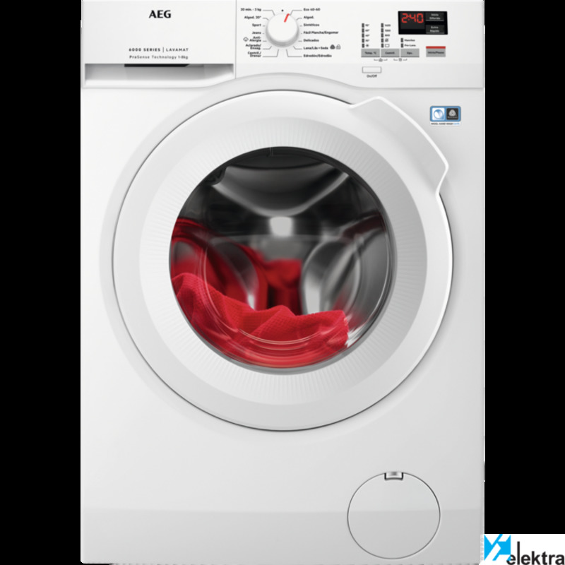 Lavadora AEG de la Serie 6000 ProSteam de 8 kg de capacidad y centrifugado de hasta 1.400 rpm, panel de control Blanco y puerta Blanca, motor Inverter, tecnología ProSense que ahorra tiempo,
