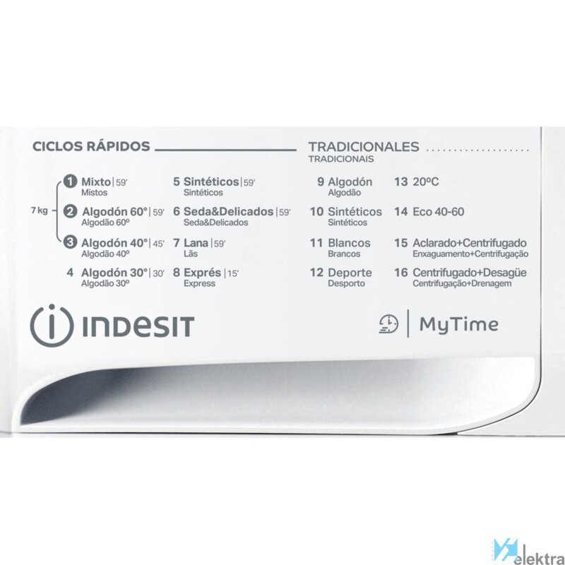 Indesit MTWA 71252 W SPT. Tipo de carga: Carga frontal. Capacidad nominal: 7 kg, Clase de secado por giro: B, Nivel de ruido (spin): 76 dB, Nivel de ruido (lavado): 56 dB, Máxima velocidad de centrifugado: 1200 RPM. Color del producto: Blanco. Ancho: 595 mm, Profundidad: 540 mm, Altura: 850 mm. Clase de eficiencia de energía: ERecipiente :