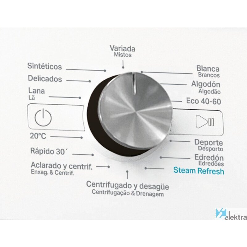| Funciones y programas | Programas especiales: 20ºC, Lana, Deporte , Edredón, Blanca, Rápido 30?,Steam; Refresh; Opciones: FreshCare+, Clean+ Aclarado intensivo, Inicio diferido, Temperatura,; Centrifugado; Parada de ciclo (inicio/pausa), Inicio retardado, Bloqueo; teclas, Blanqueado, Indicador de fase de lavado, Indicador de Error. |