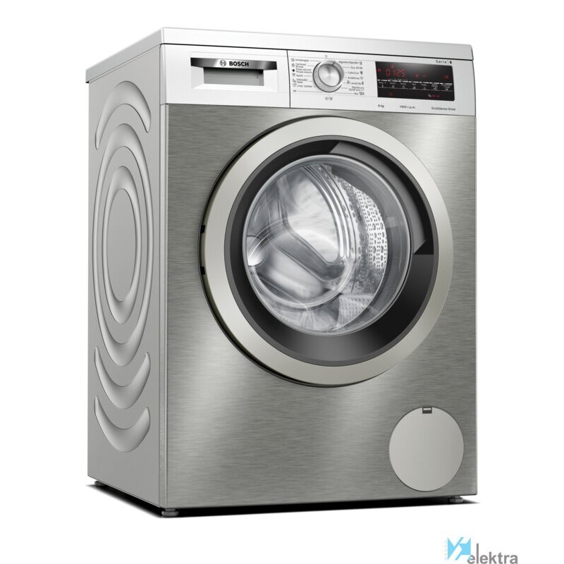 Lavadora de carga frontal Bosch, 8 kg, Acero antihuellas, 1400 rpm, Serie 6, WUU28T6XES.